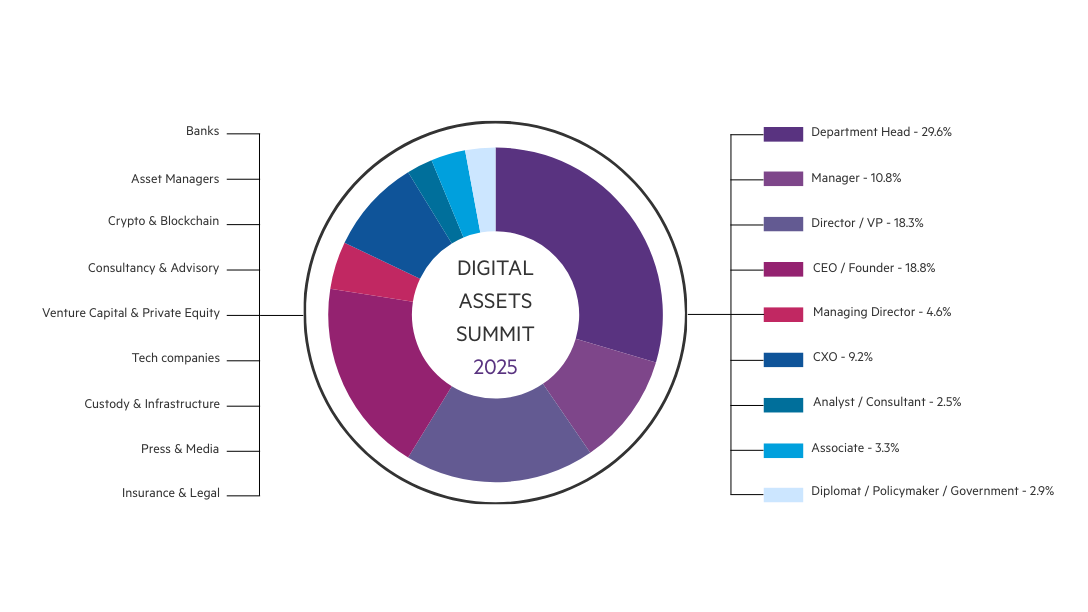 Across two days of keynotes, panels and private networking, the summit will tackle the next wave of transformation: from tokenisation of real-world assets and digital asset allocation strategies to the evolving regulatory landscape and blockchain infrastructure.